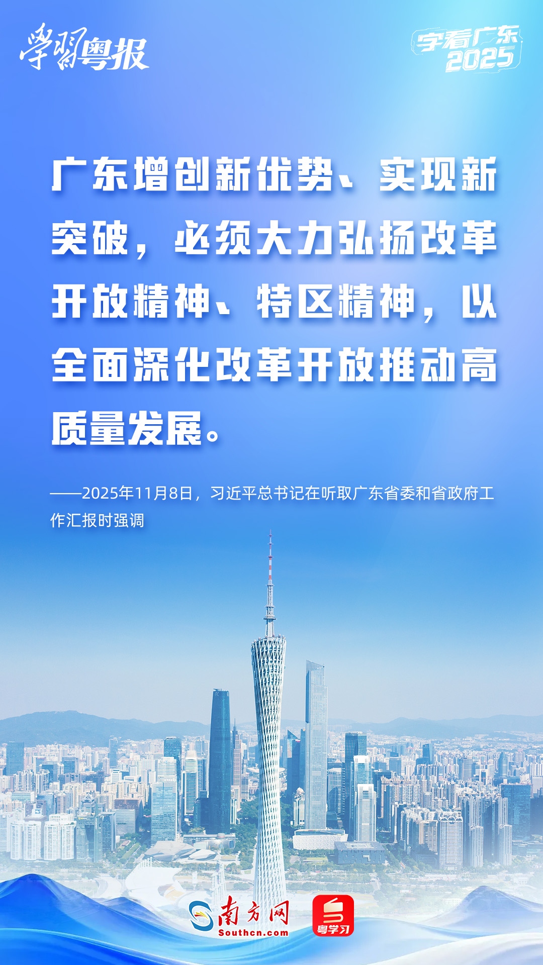 2025年,习近平总书记在党的二十大后连续第3年亲临广东视察,寄望广东走在前、作示范、挑大梁,增创新优势、实现新突破,给予广东最深切的激励鞭策、最有力的指导支持,引领广东在时代浪潮中持续焕发出蓬勃生机与无限活力,书写属于新时代的奋进华章。