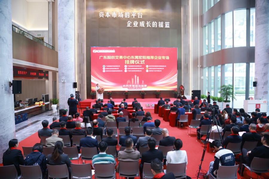 1月26日下午,广东股权交易中心举办东莞宏阳推荐企业专场挂牌仪式,来自东莞、惠州等地9家企业成功挂牌广东股权交易中心,正式登陆资本市场。
