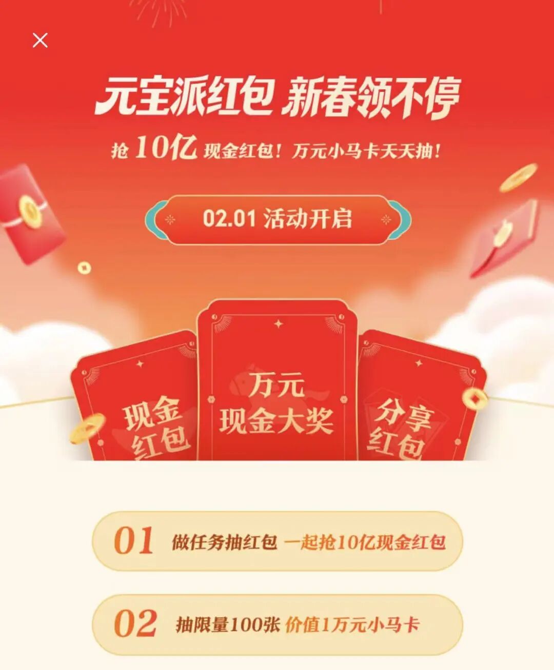 2026年AI圈的年味,在腊八节前后被腾讯和百度拉高。1月25日,腾讯元宝和百度文心先后宣布,要在这个春节分别发出10亿、5亿现金红包,单个红包最高可得10000元。