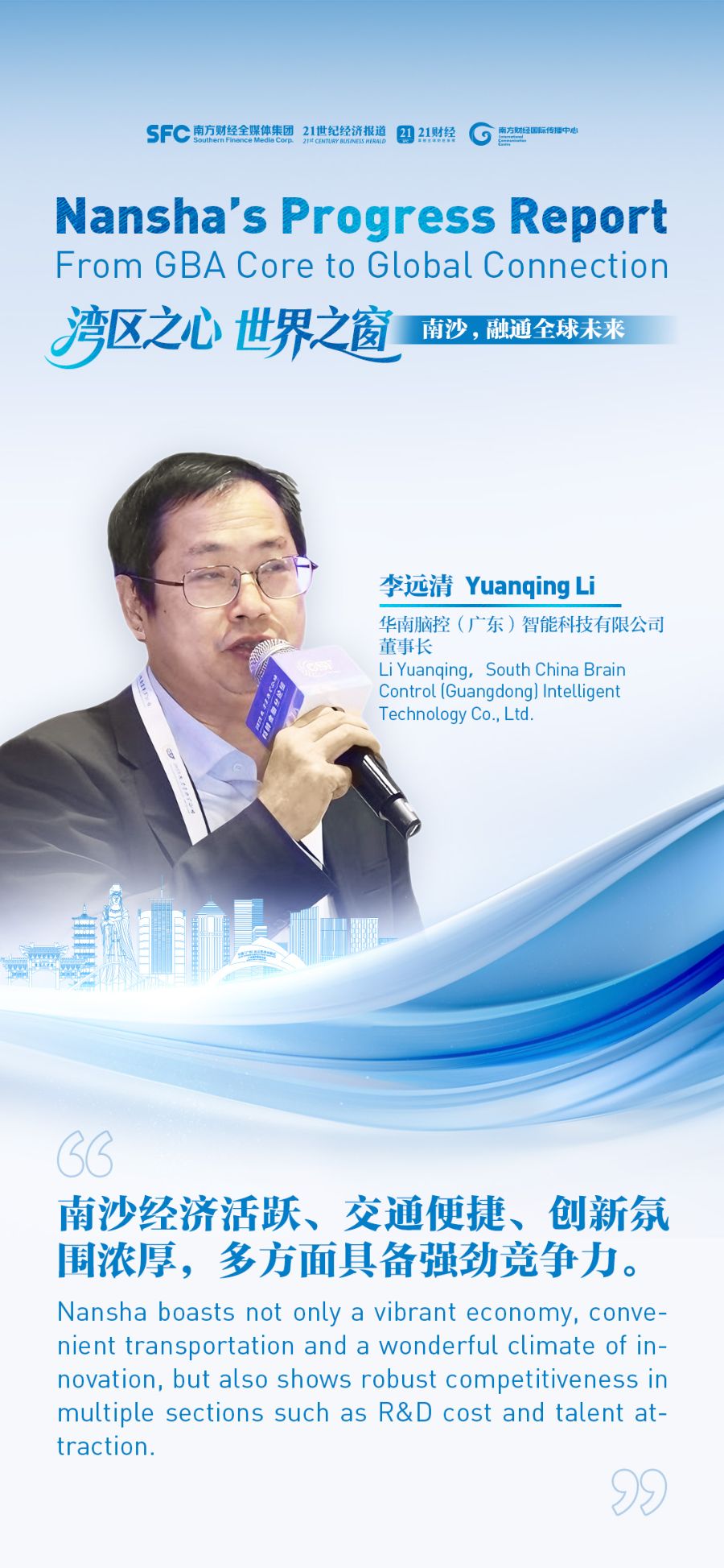 在大湾区产业协同浪潮下,李远清看好南沙的发展潜力。他表示,南沙地处粤港澳大湾区地理几何中心,毗邻深圳、香港、澳门,不仅经济活跃、交通便捷、创新氛围浓厚,还在研发成本、人才汇聚等方面具备强劲竞争力。“未来若有合适的机会,我们肯定会考虑在南沙开展成果转化和产业化布局。”