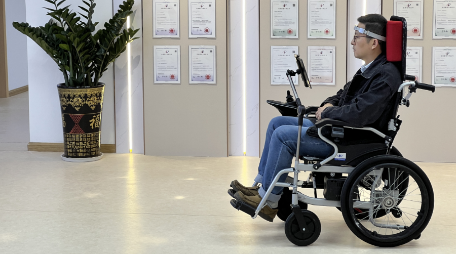 当用户戴上头环,即可用“意念”操控轮椅:聚焦目光,轮椅即刻启动;轻眨双眼,确认前进方向;转动头部,调整行进轨迹;轻微点头,完成刹车。