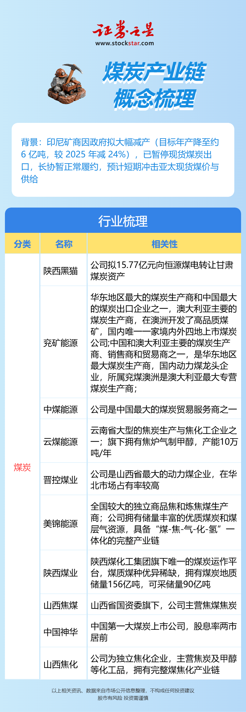 背景:印尼矿商因政府拟大幅减产(目标年产降至约6亿吨,较2025年减24%),已暂停现货煤炭出口,长协暂正常履约,预计短期冲击亚太现货煤价与供给。