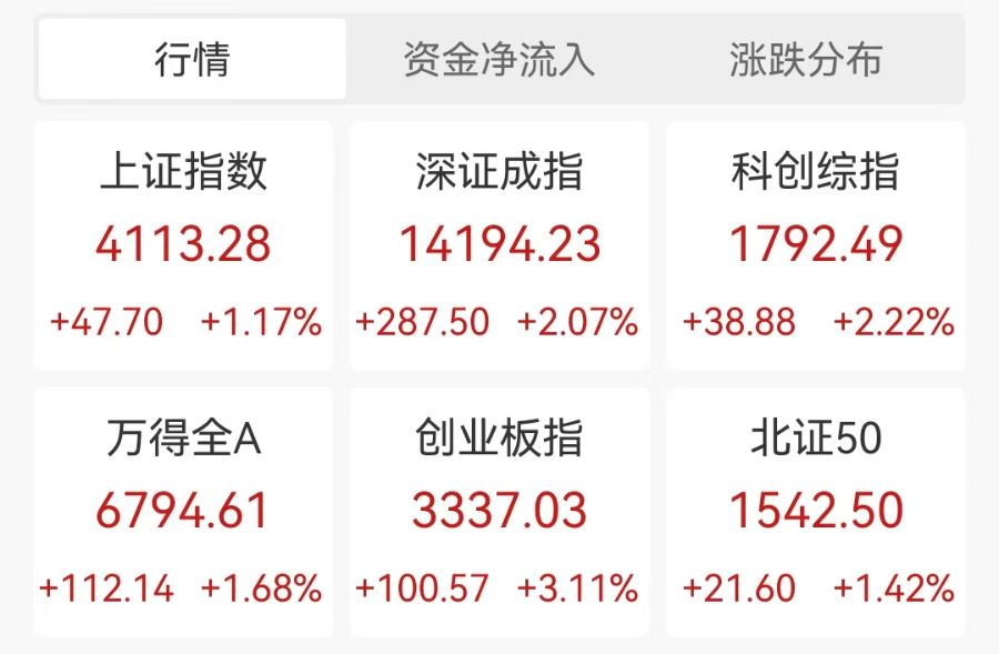 A股收评:创业板指涨近3% 全市场超4600股上涨
