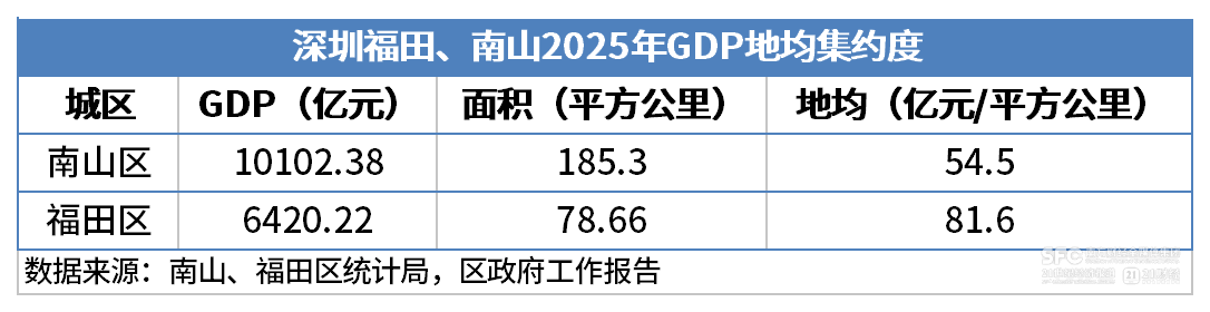 放眼全球,735.7平方公里的新加坡,以集约紧凑发展而闻名,2024年GDP为7314.36亿新元(约合4万亿元人民币),地均GDP约54.3亿元/平方公里;中国香港面积约1114.6平方公里,2024年GDP为31769亿港元(约合2.9万亿元人民币),地均GDP不到30亿元/平方公里。