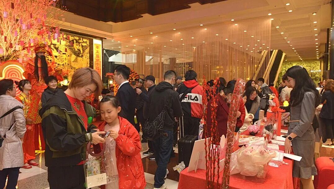 新春期间,缤纷花市于花园酒店一楼大堂举办,售卖各类年货及精品手信;2月15日至22日期间,每日还将轮番上演趣味魔术、财神爷送福、鱼灯舞、花仙子踩高跷、乐队献唱等互动表演。