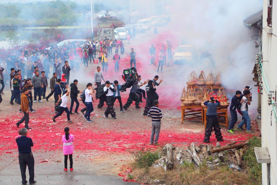 据了解,古荔园是从化当地人标叔的老宅改造。当地每年年味最隆重的一刻就是醒狮拜祠堂。锣鼓一响,醒狮穿村而行。长长的炮仗从村口一路燃到祠堂前,红纸铺满地面,舞狮、拜祠堂依次进行,村民提着装满糖果和桔子的“篮仔”祭拜祖先。