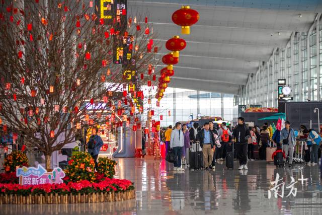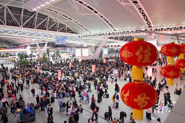 2月23日晚间,夜色渐深,广州南站依旧灯火通明,人流如织,一趟趟夜间高铁列车上客流涌动,旅客怀揣期待开始返程。随着春节假期进入尾声,返程客流达到最高峰,各大高铁站24小时火热营业,白云机场客流数据接连刷新纪录,出入境客流也创下新高。