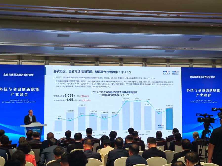 2月24日,2026年广东省高质量发展大会在广州举行。当日下午,在“科技与金融创新赋能产业融合”分会场上,清科集团创始人、董事长倪正东围绕“参与打造金融、产业、科创和地方政府的对接交流平台,助力广东股权投资市场高质量发展”主题进行发言。