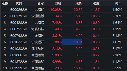 航运板块反复走强,招商轮船4天3板,续创历史新高,中远海能、招商南油、中远海特、中远海发跟涨。