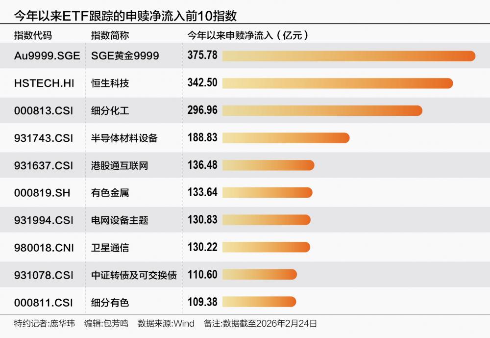 Wind数据显示,截至2月24日,跟踪沪深300、中证1000、上证50等核心宽基指数的ETF产品年内遭净赎回规模均超过1000亿元。