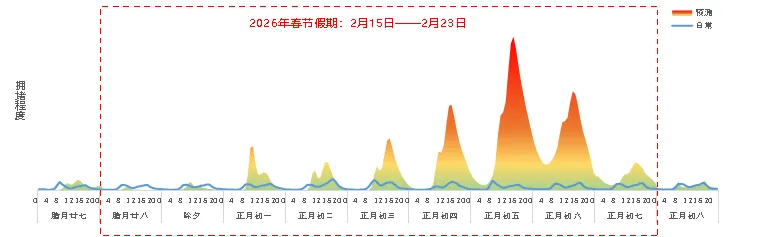 交通部《春节假期全国公路网运行研判分析报告》图:2026年春节假期全国高速公路小时级拥堵变化