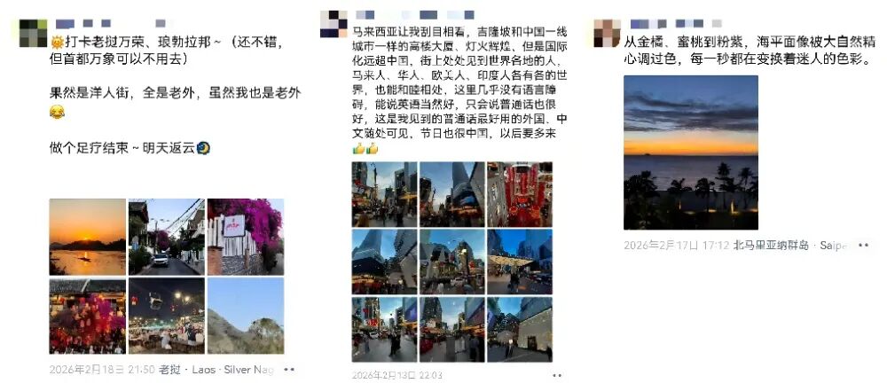 第二个观察,是朋友圈里上演的“环球旅行”。