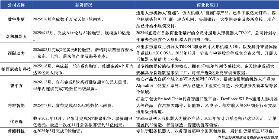 一年后,站在2026年初回望,这八家公司的命运轨迹已发生深刻分野:有的乘着资本东风完成了融资跨越与估值膨胀,有的在技术迭代的赛道上完成从实验室到商业化的闭环,有的则将产品深入到工业制造到民生服务等多元场景。