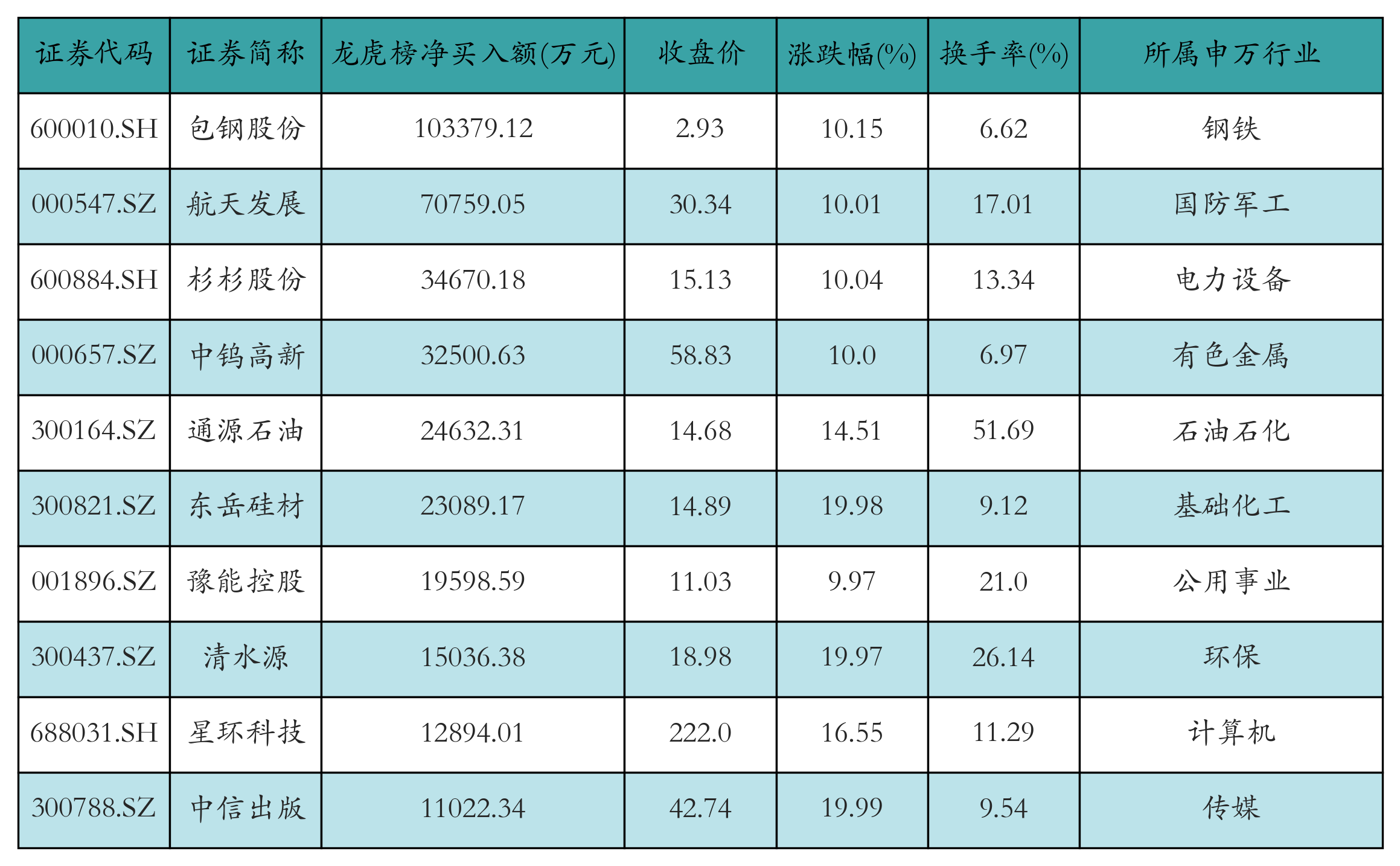 四、龙虎榜情况