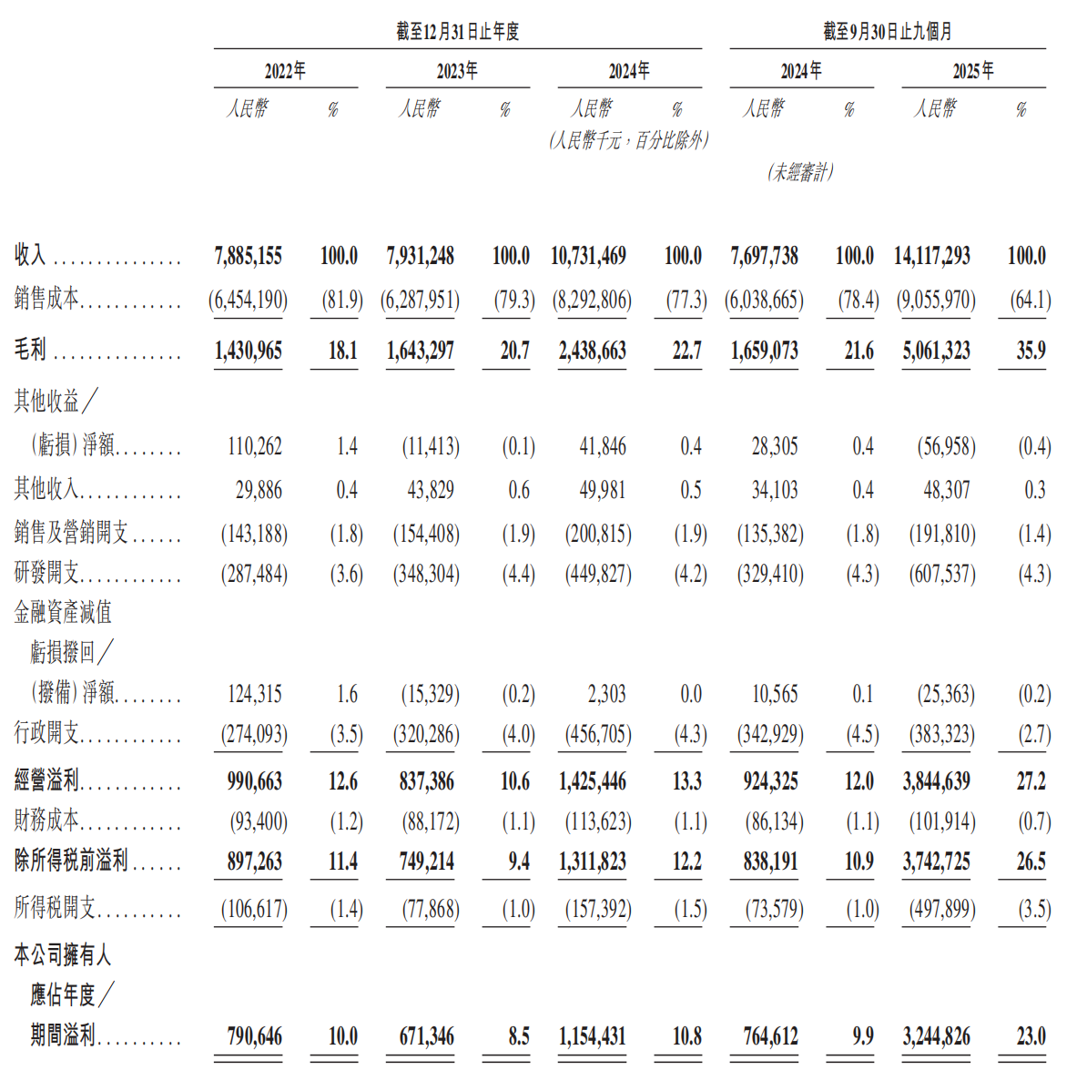 技术与大客户双重驱动下,胜宏科技的营收与利润也持续攀升。招股书显示,2022年、2023年、2024年以及2025年前三季度,胜宏科技分别实现营收78.85亿、79.31亿、107.31亿及141.17亿元,对应的净利润分别为7.91亿、6.71亿、11.54亿及32.45亿元。
