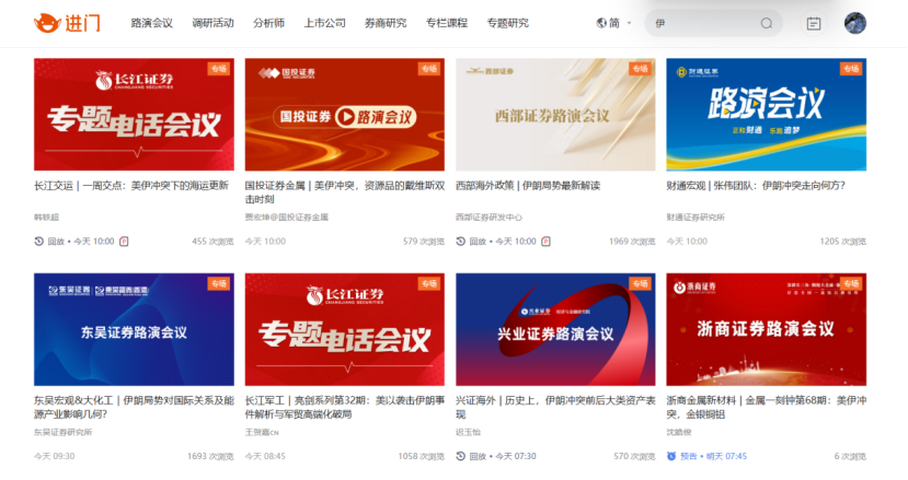 券商中国记者在进门平台梳理发现,从2月28日起到未来几天,各家券商围绕美伊冲突(已办或即将)举办的专题电话会议已接近50场,覆盖宏观、策略、原油、交运、化工、金属、军工等全产业链条。