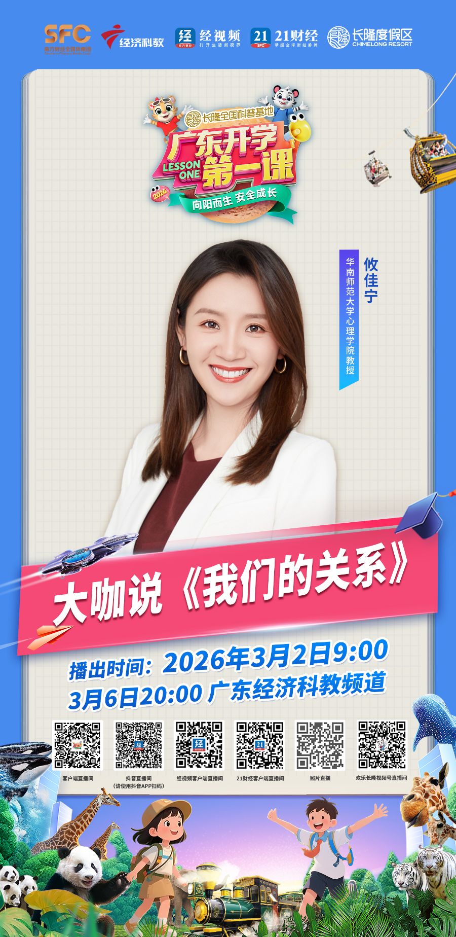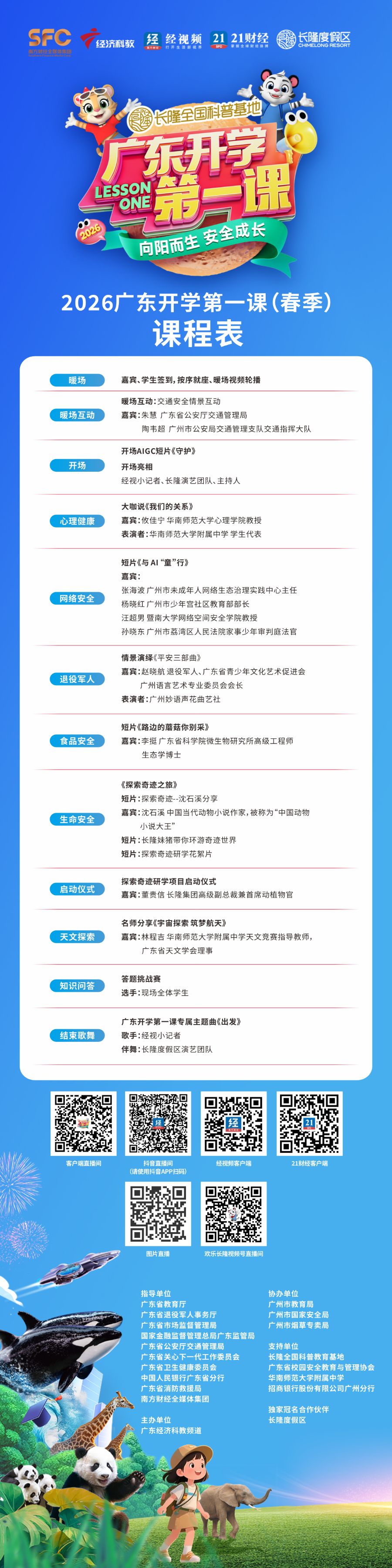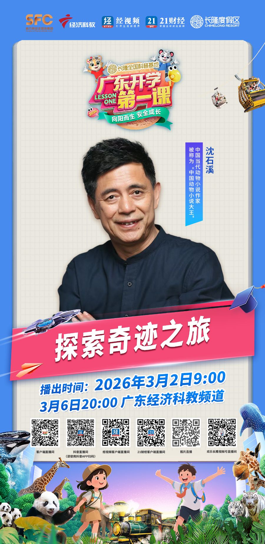 由全国科普教育基地——长隆度假区独家冠名播出、广东经济科教频道联合广东省教育厅等十余个省级厅局共同打造的2026广东开学第一课(春季)已完成全面升级,将于3月2日9:00全网首播,3月6日20:00在广东经济科教频道播出,为全省中小学生送上新学期的第一份“成长礼包”。