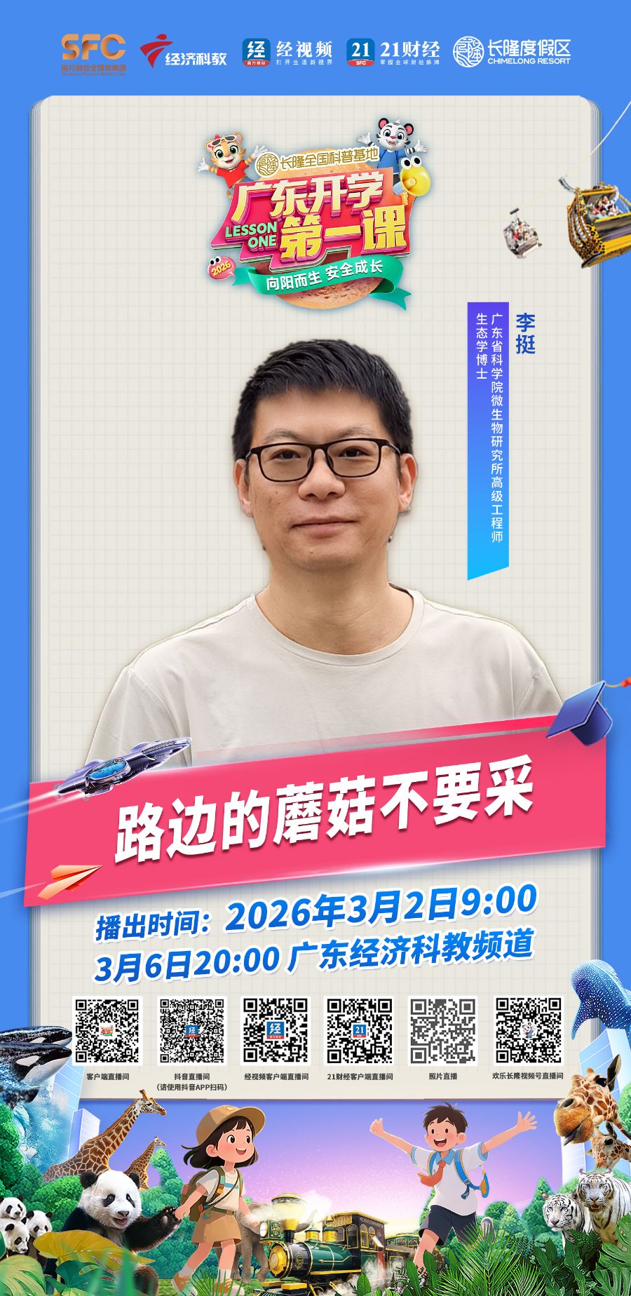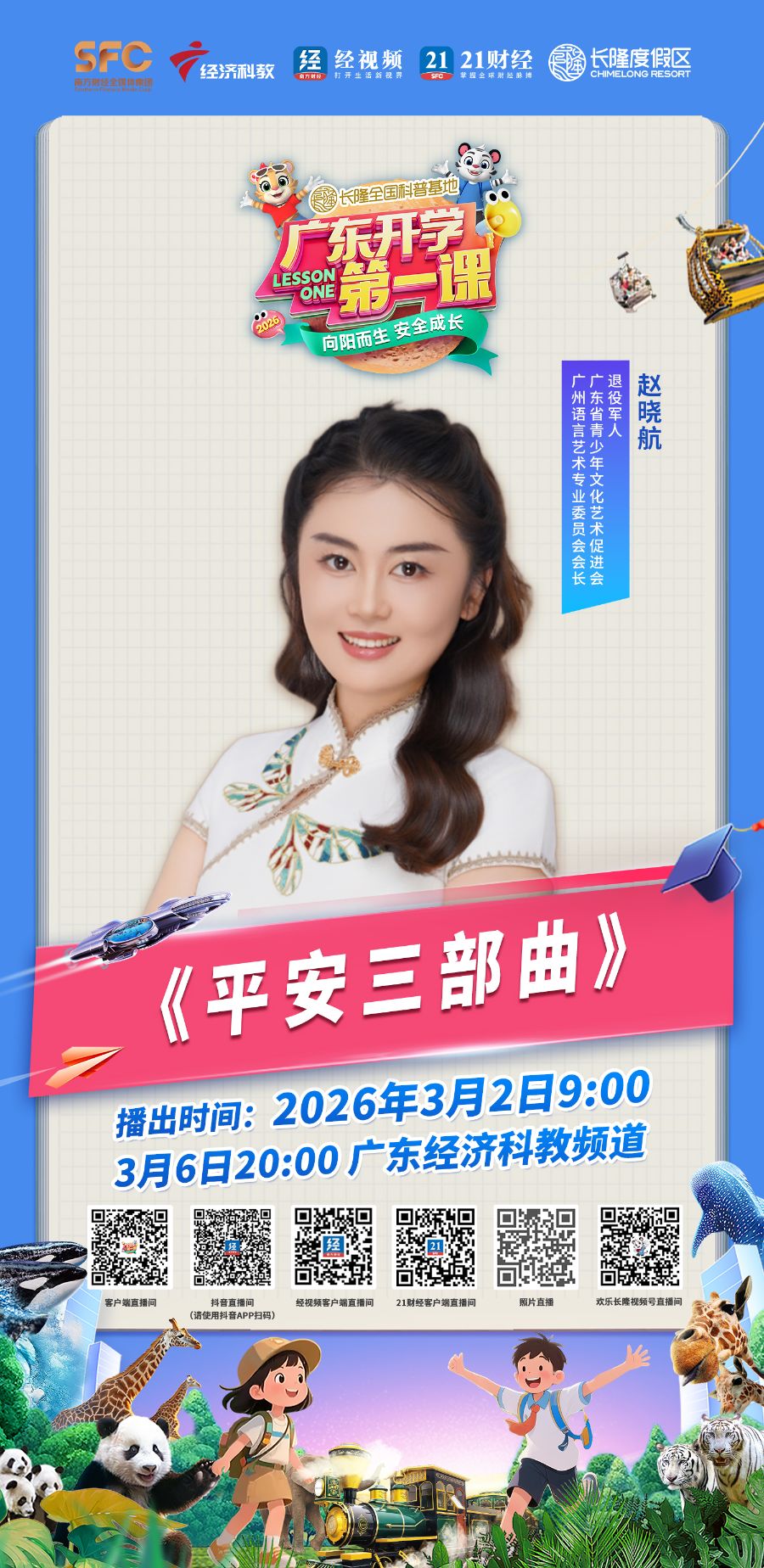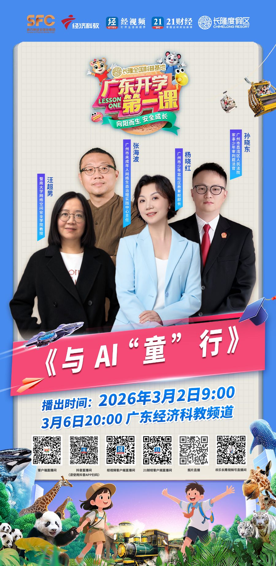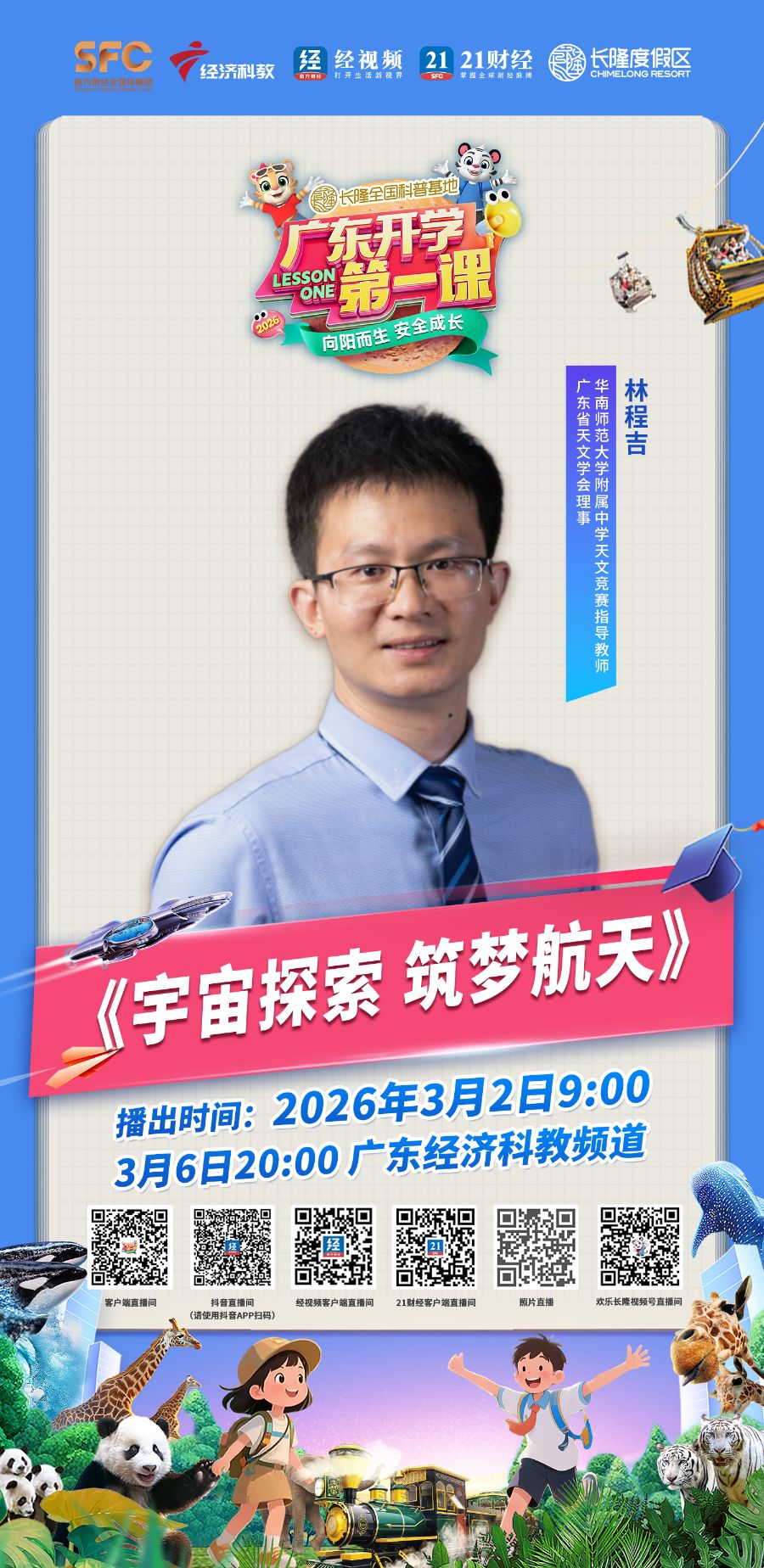 由全国科普教育基地——长隆度假区独家冠名播出、广东经济科教频道联合广东省教育厅等十余个省级厅局共同打造的2026广东开学第一课(春季)已完成全面升级,将于3月2日9:00全网首播,3月6日20:00在广东经济科教频道播出,为全省中小学生送上新学期的第一份“成长礼包”。