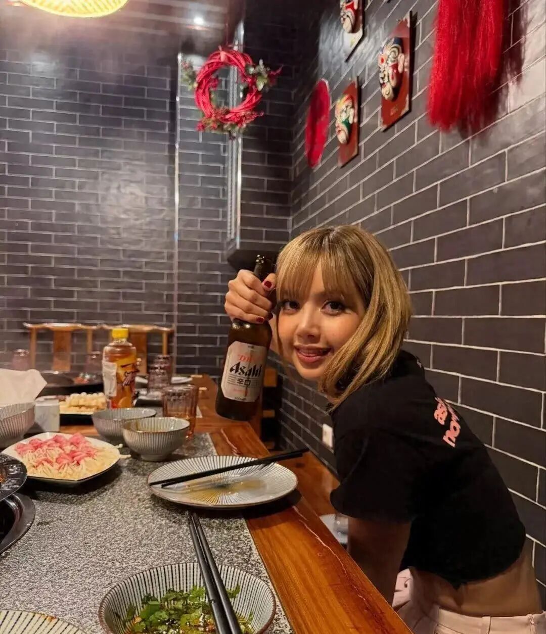 *韩国女团BLACKPINK成员Lisa与冰红茶同框