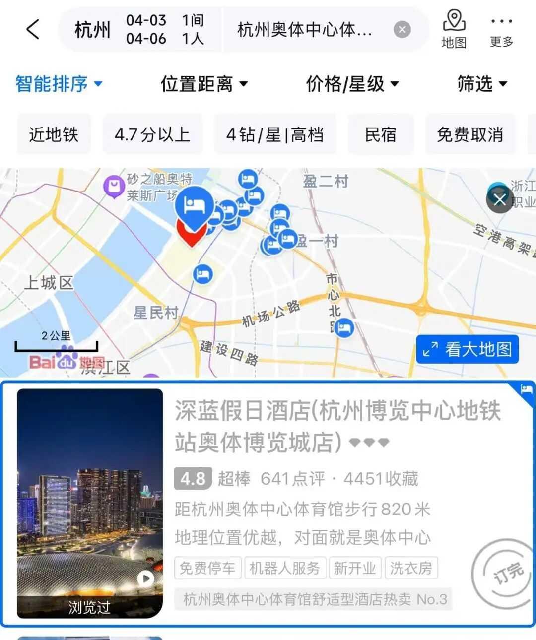距离演唱会正式开唱还有一个多月,迈点查询OTA平台发现,周杰伦演唱会期间(4月3日到6日),周边核心位置酒店,要么显示 “订完”,要么价格明显上浮。可见在抢到票的同时,消费者已经习惯于同步订好酒店,可以说“抢到票= 立刻锁酒店 + 订车票 + 规划行程”。