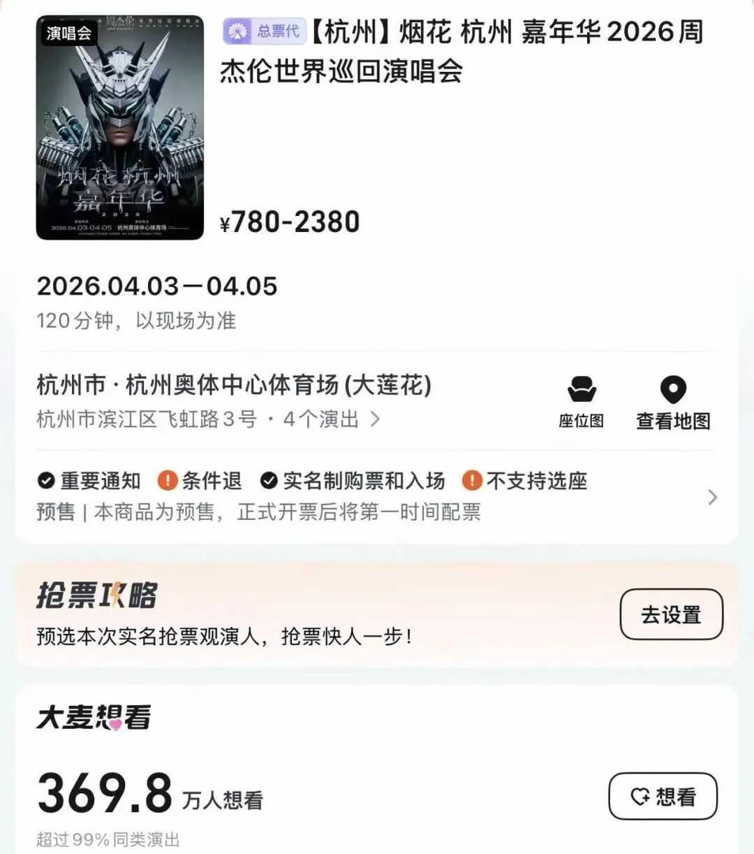 据不完全统计,截至发稿,本次演唱会仅大麦平台“想看”人数已轻松突破369万大关。