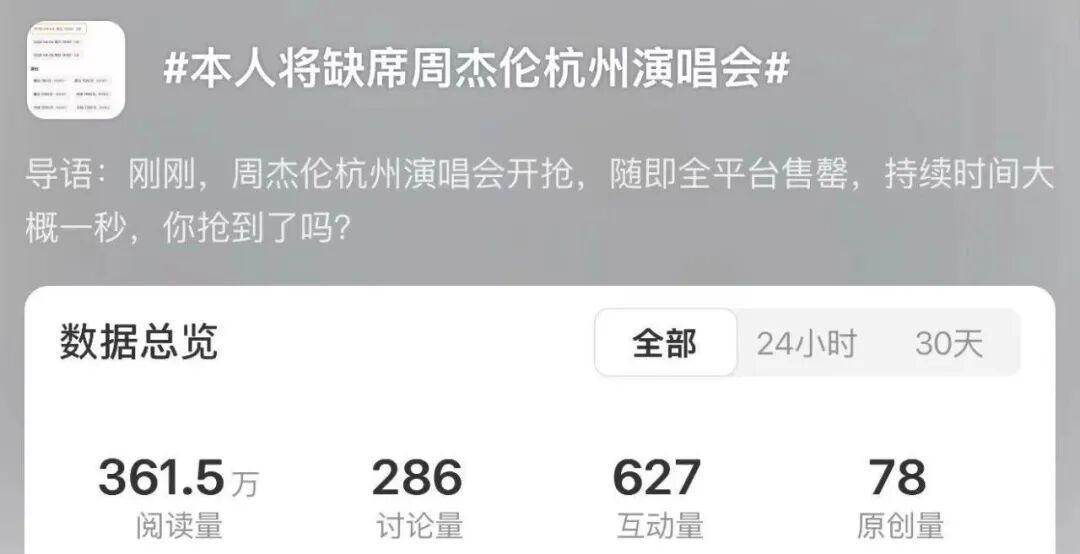 近日,周杰伦杭州演唱会三场正式开启预售,#周杰伦演唱会#迅速登顶热搜。这场关于青春的“席位争夺战”在开售的瞬间便宣告结束,所有价位的门票全面“秒空”。