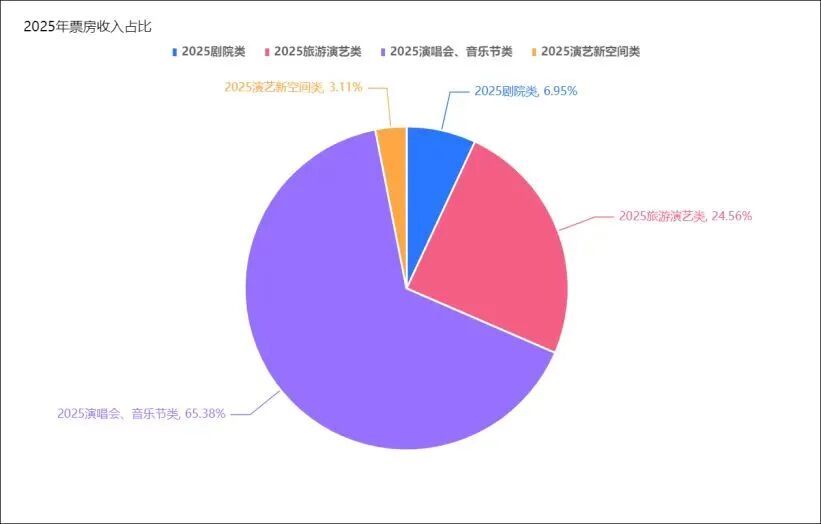 据《2025杭州演艺市场报告》显示,演唱会、音乐节票房占比从2023年的22.71%大幅跃升至65.38%,成为带动市场的“主引擎”。仅2025年,杭州就举办了164场演唱会音乐节。凯蒂·佩里杭州站跨城观演比例达76.4%,省外观众占比65.1%。
