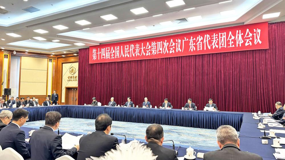 3月6日下午,十四届全国人大四次会议广东省代表团在住地举行全体会议,继续审议政府工作报告,审查“十五五”规划纲要草案,来自111家境内外媒体的277名记者到会旁听。