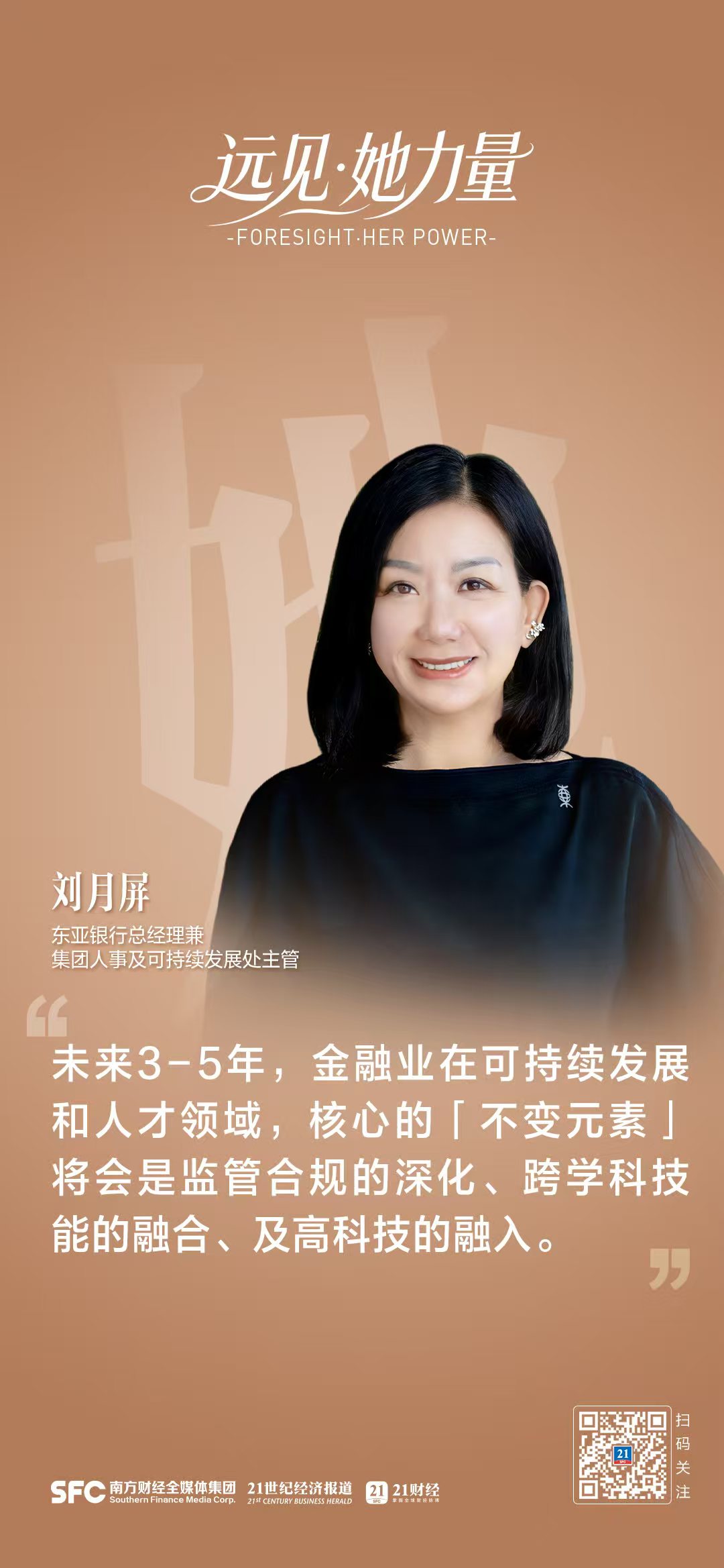 关于未来三到五年金融业在可持续发展和人才领域的“变与不变”,刘月屏指出,在业务层面,绿色金融正与传统业务深度融合,可持续发展理念不再只是附加议题,而是持续融入银行日常运营与产品创新之中,绿色贷款、转型融资等将成为主流。