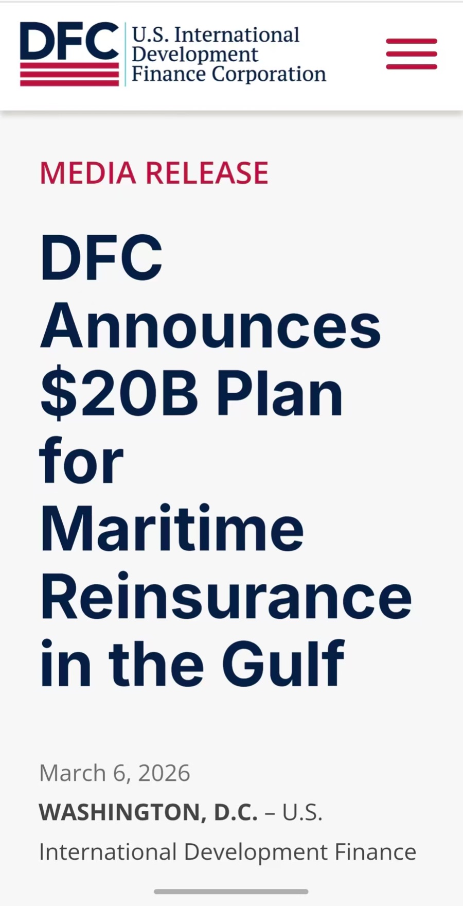 美国国际开发金融公司首席执行官Ben Black表示,“再保险计划旨在确保石油、汽油、液化天然气、航空燃油等关键物资能顺利通过霍尔木兹海峡,再次流向世界各地。”