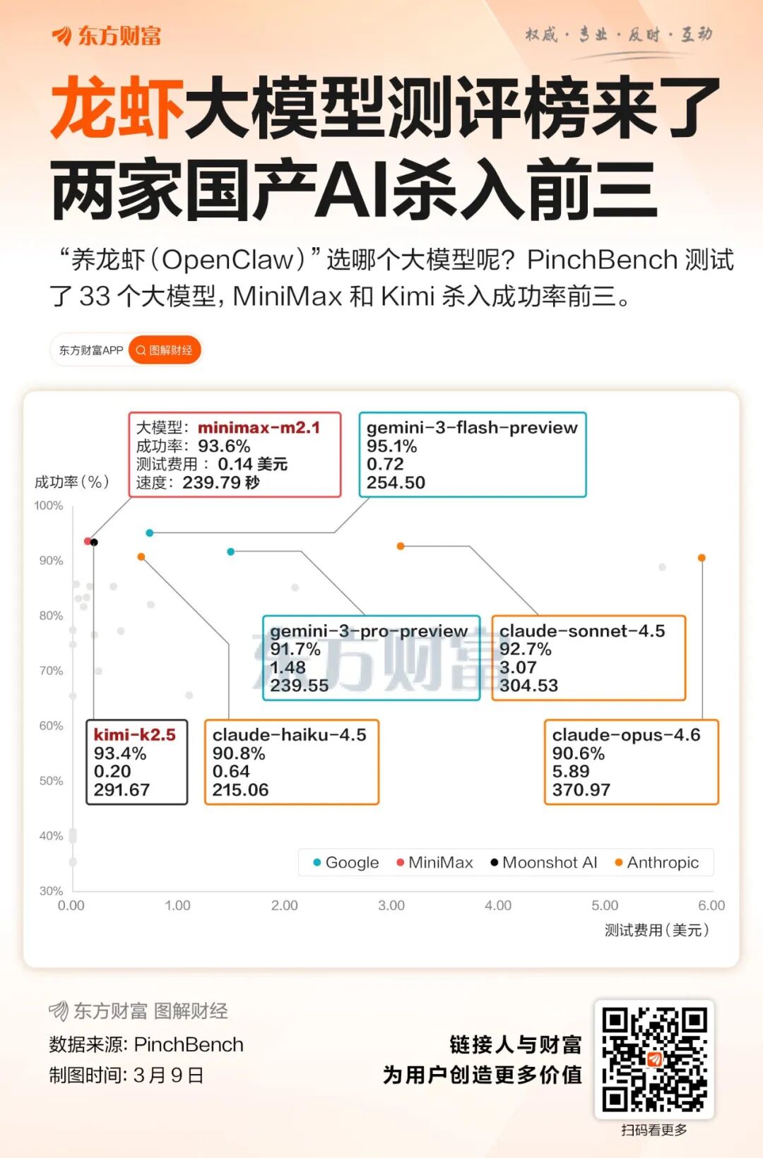 龙虾大模型测评榜来了!MinMax和Kimi杀入前三