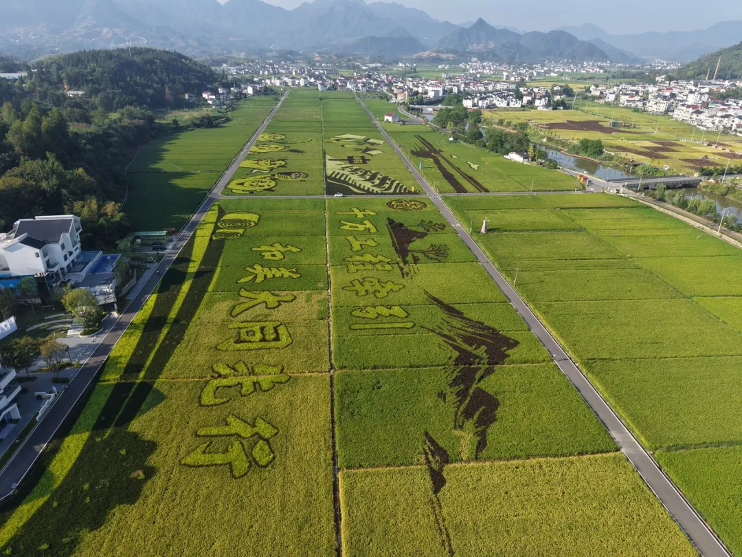 巨大的田园画卷展现出“千万工程”在乡村建设中的生动实践,图为建德大同稻香小镇稻田 图源:潮新闻客户端