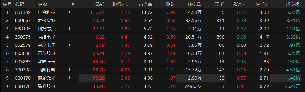 3月10日,存储芯片概念高开,盘中持续活跃,广合科技涨超7%,太极实业、利扬芯片、商络电子等跟涨。