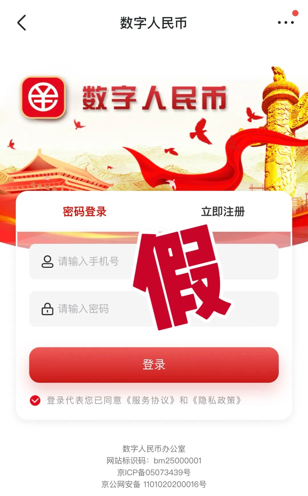 不法分子利用公众对数字人民币的新鲜感,通过非正规渠道发送“预约登记领数字人民币体验金” 等虚假短信、推文,附带诈骗链接。用户点击后或被诱导填写银行卡信息,或下载仿冒App存入资金,最终导致资金被盗。