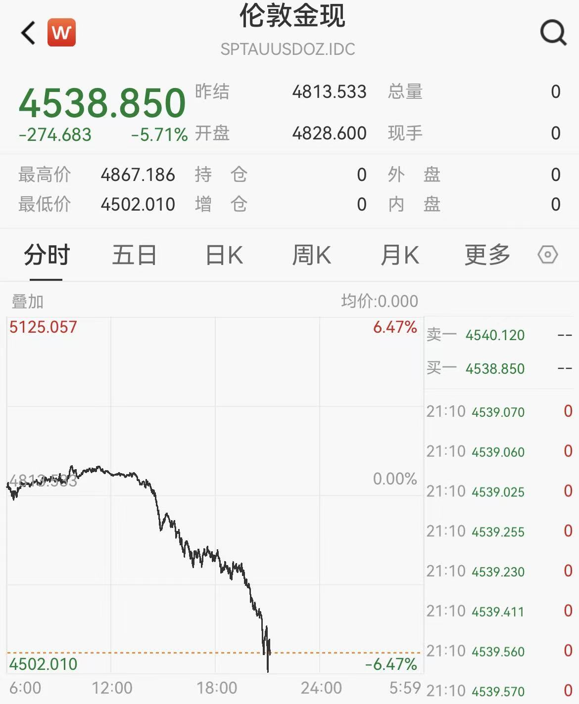 3月19日晚,黄金白银跳水幅度进一步扩大,截至北京时间21:01,现货黄金日内跌幅扩大至5.71%,失守4600美元关口。现货白银日内跌幅超12%,报66.25美元/盎司。