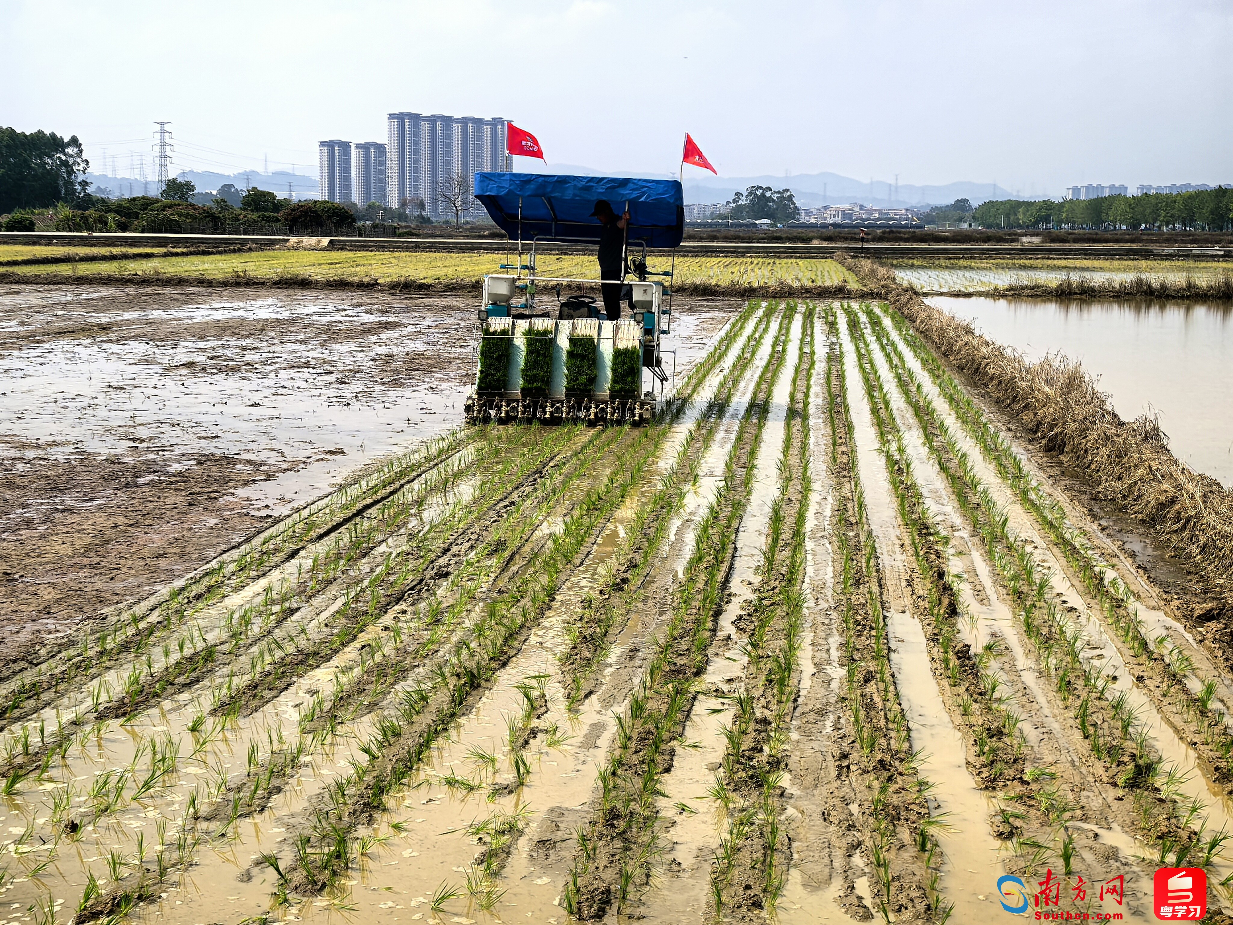 阳春三月,在广州增城的万亩稻田里,智能农机轰鸣作业,无人机巡田施肥,插秧机有条不紊地种下丝苗米幼秧。作为“广货”代表性名片之一,丝苗米以独特风味与过硬品质,从岭南田间出发,走向万家餐桌。