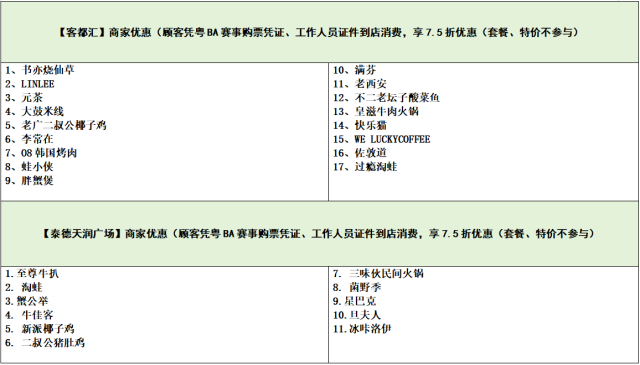 目前,罗定市已有多家商户参与粤BA“票根经济”活动。赛事期间,市民游客持粤BA门票,即可在罗定多家商圈、餐饮、酒店等享受专属折扣,体验看球、聚餐、购物一条龙服务。