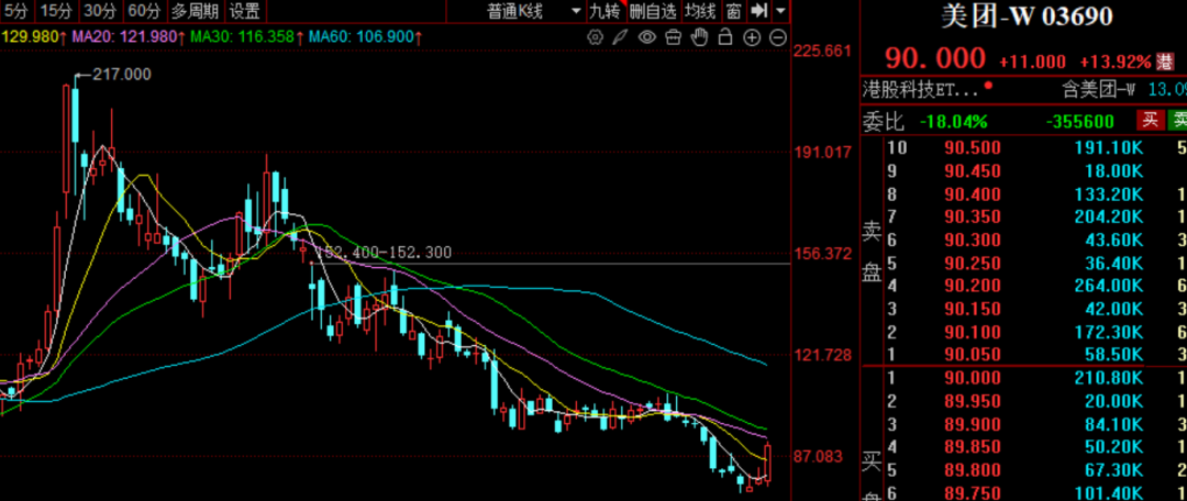 美团今天一度大涨15%,阿里、京东等科网股集体上涨。