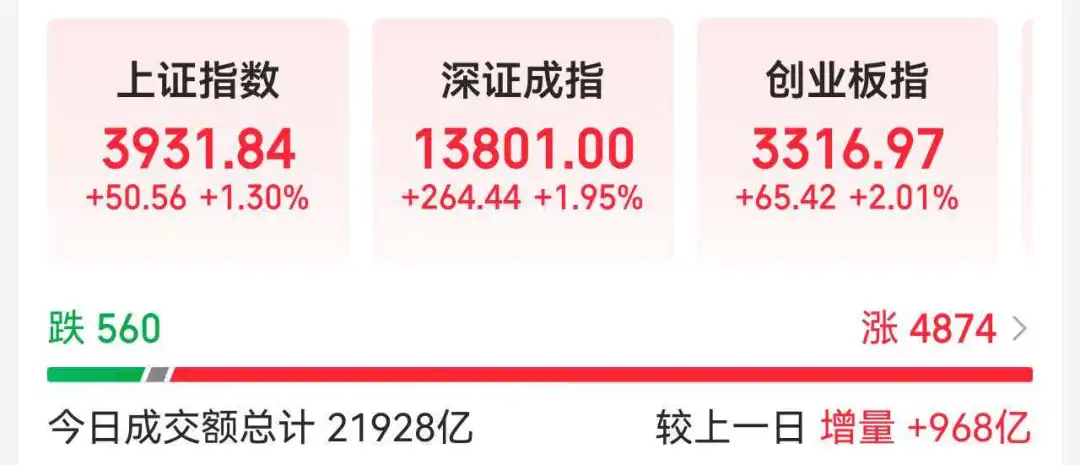 随着消息面回暖,叠加技术面反弹,周二市场5000家上涨,今天近4900家上涨。