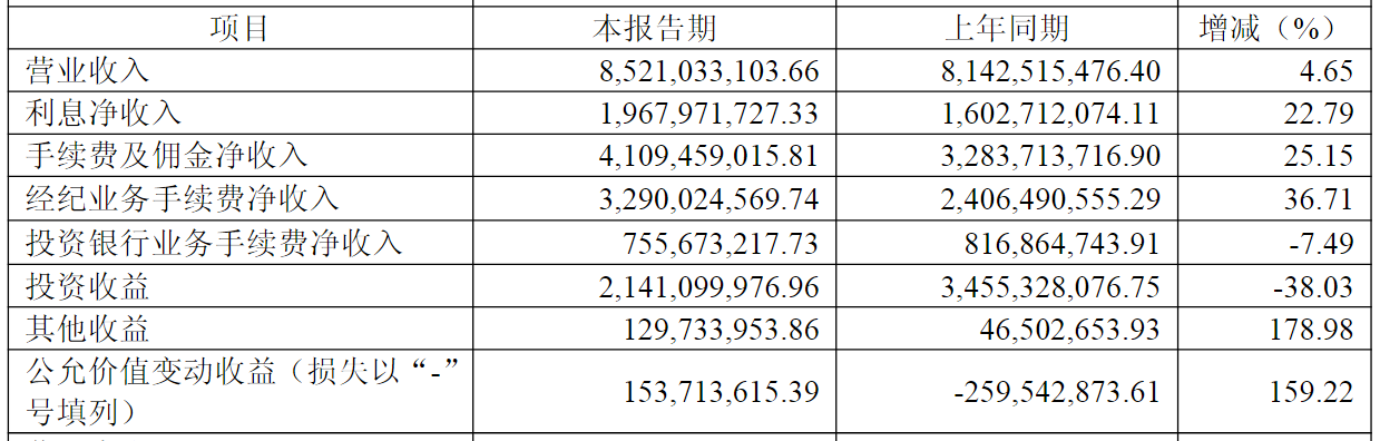 谈及营收变动的原因,光大证券分析称,业绩增长主要得益于信用、经纪及资管业务表现向好,自营投资业务增速放缓则对营收构成一定拖累。