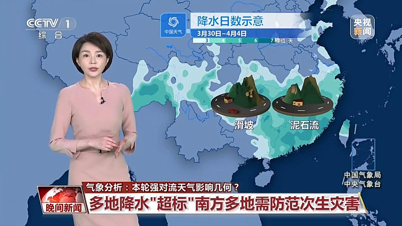 气象分析师 王蓝一:预计一直到四月初,南方都将维持多雨的状态,其中今天到31日、4月2日到4日,将会有两轮降水过程轮番来袭。