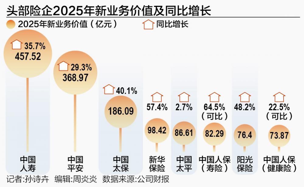 近期,上市险企年报密集披露。中国人寿、中国平安、中国太保、中国人保、新华保险、中国太平、阳光保险等头部险企相继交出2025年成绩单。