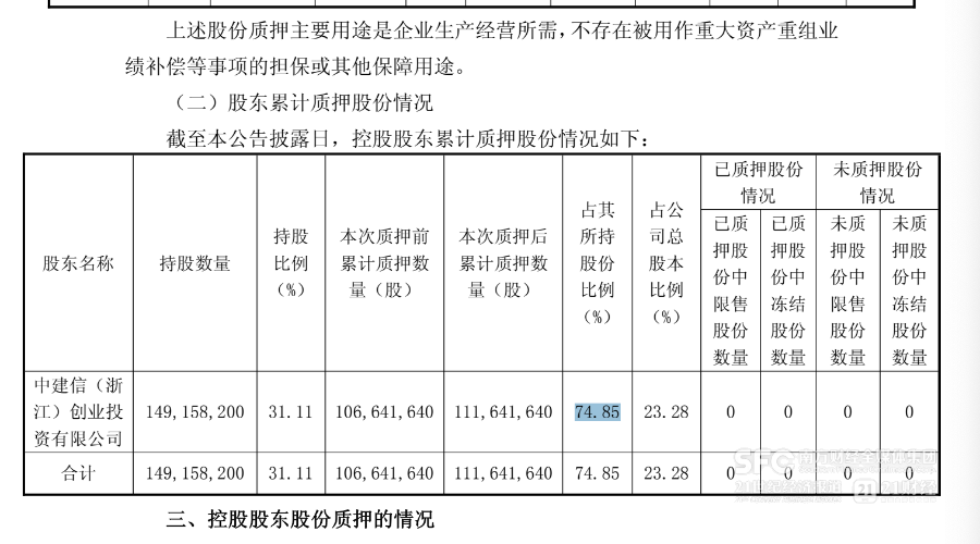 而这笔钱中约有一半是银行贷款,因而中建信入主后也随即开展了高比例质押。