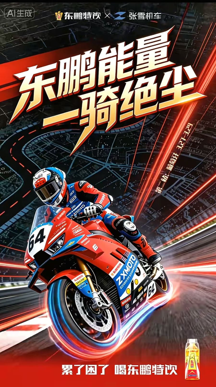 这是中国摩托车制造商首次在量产车顶级赛事中登顶,打破了欧美日品牌的长期垄断。而在赛车上,四个醒目的汉字“东鹏特饮”随着直播镜头传遍了全球。