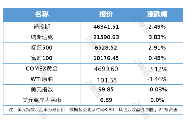 隔夜外盘