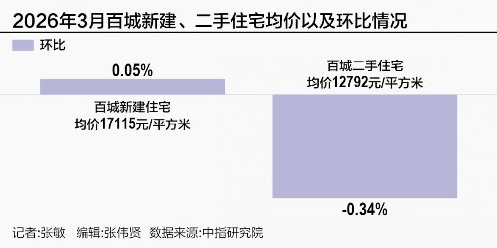 价格方面,前述机构发布的报告指出,2026年3月,百城新建住宅均价为17115元/平方米,环比上涨0.05%;百城二手住宅均价为12792元/平方米,环比下跌0.34%,跌幅连续三个月收窄。