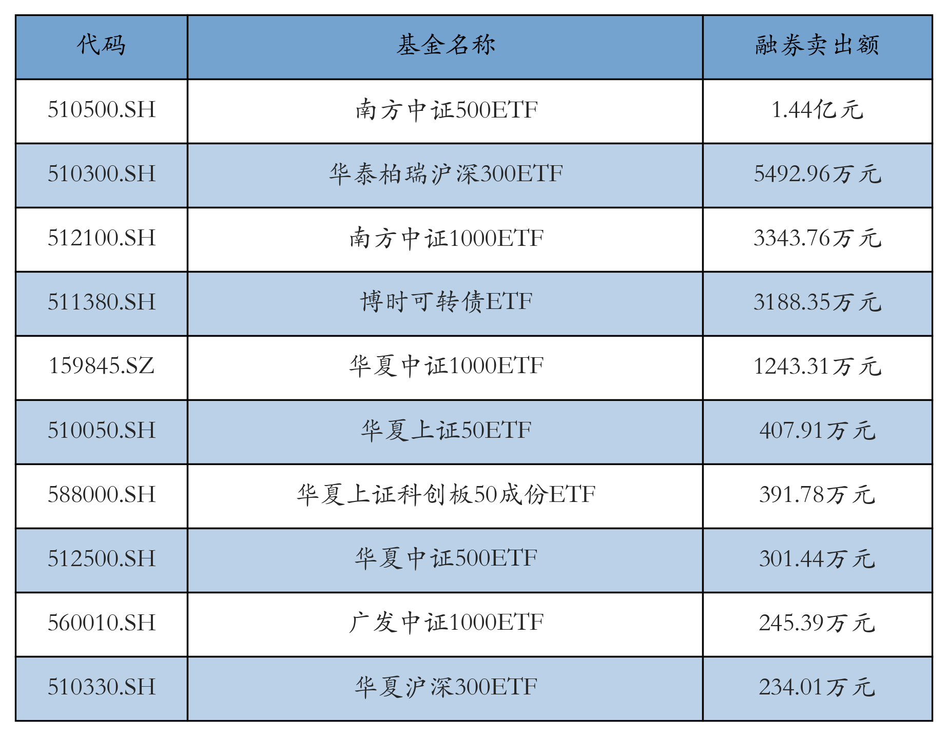ETF融券卖出额