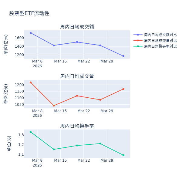 流动性方面,上周股票型ETF市场日均成交额减少17.8%,日均成交量增加7.5%,换手率减少0.12%。