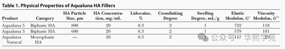 前述研究选取了三款润致系列透明质酸填充剂,三款产品均添加了0.3%的利多卡因以提升治疗舒适度。润致5号是一款高弹性填充剂,弹性模量G’值达到732Pa,粘性模量G’’为118Pa。高弹性模量意味着更强的抗变形能力,适合在骨膜层提供结构性支撑。润致3号的G’值为579Pa,G’’为101Pa,弹性适中,兼顾支撑与柔顺,用于颧部苹果肌区域的容量补充。润致Natural的G’值仅为117Pa,G’’为29Pa,弹性最低、最柔顺,组织融合性好,适合鼻唇沟、木偶纹等动态区域的浅层精细修饰。