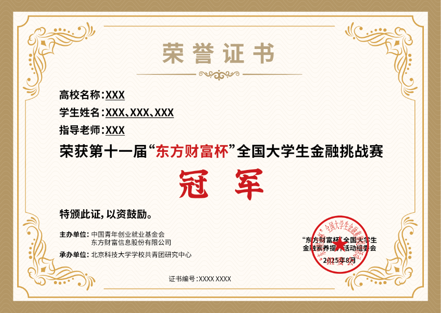 *具体软件包内容详见大赛规则,赛事所设奖金均为税后金额。领队及指导教师奖金、软件包由东方财富发放,学生相关奖金由中国青年创业就业基金会发放。
